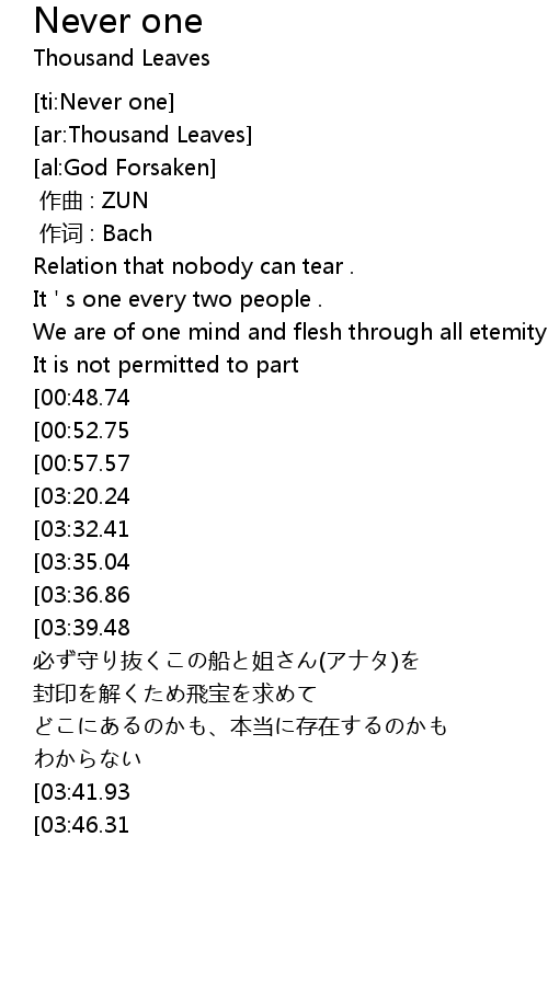 | [ti:Never one] | |