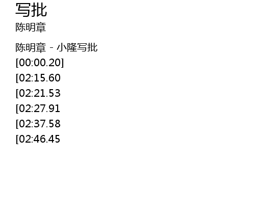 | [00:00.00] | 陈明章 - 小隆写批 |