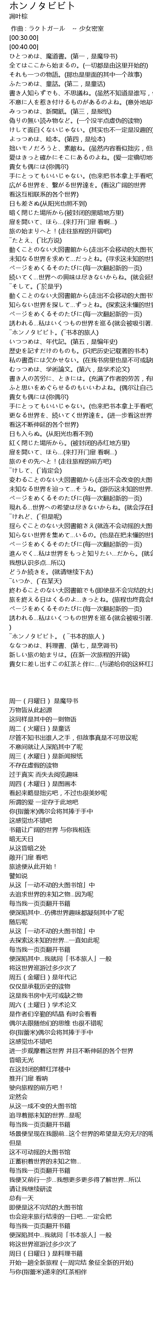 | [01:02.46] | 周一(月曜日) 是魔导书 |