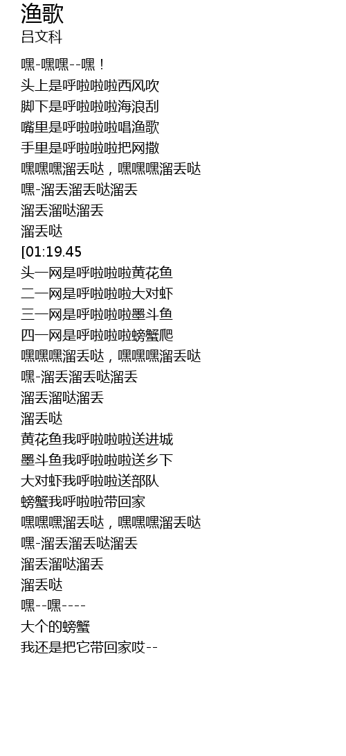 | [01:29.86] | 黄花鱼我呼啦啦啦送进城 |