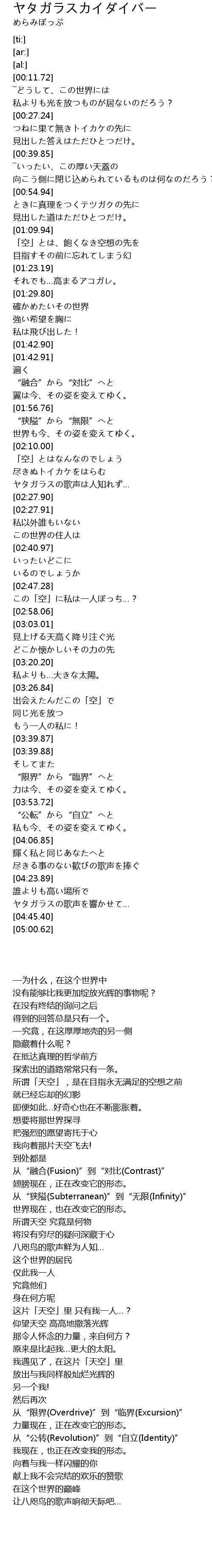 | [01:57.03] | 从“狭隘(Subterranean)”到“无限(Infinity)” |