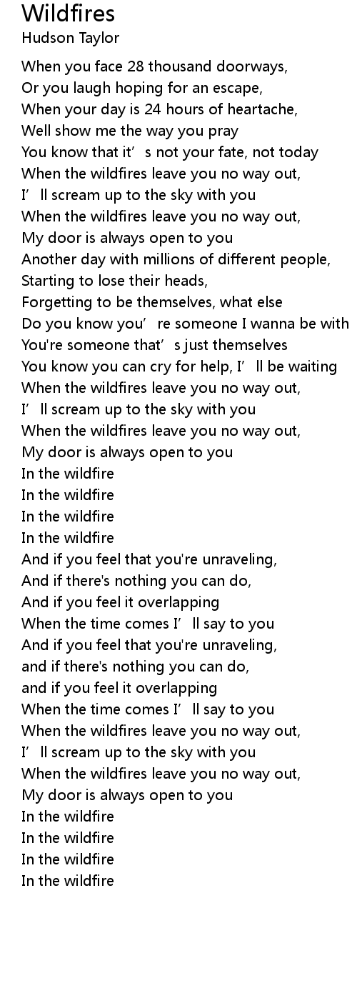 | [00:39.205] | When the wildfires leave you no way out, |