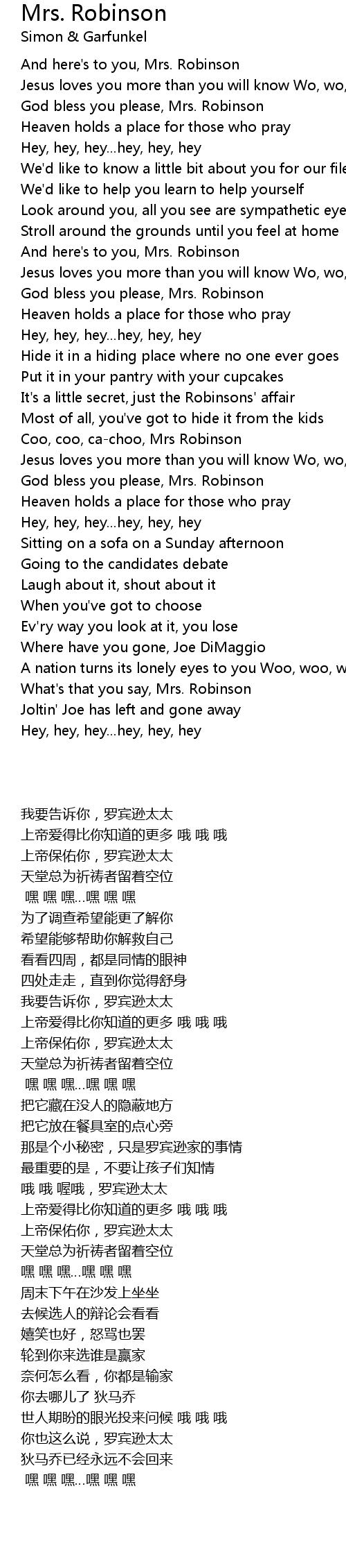 Mrs. Robinson 歌词