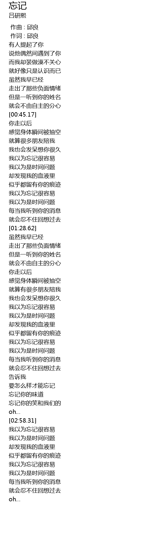 | [00:59.49] | 我以为忘记很容易 |