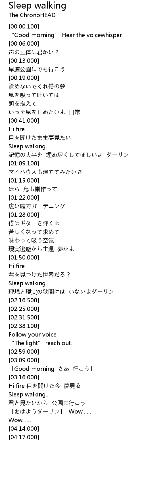 | [03:30.000] | Sleep walking... |