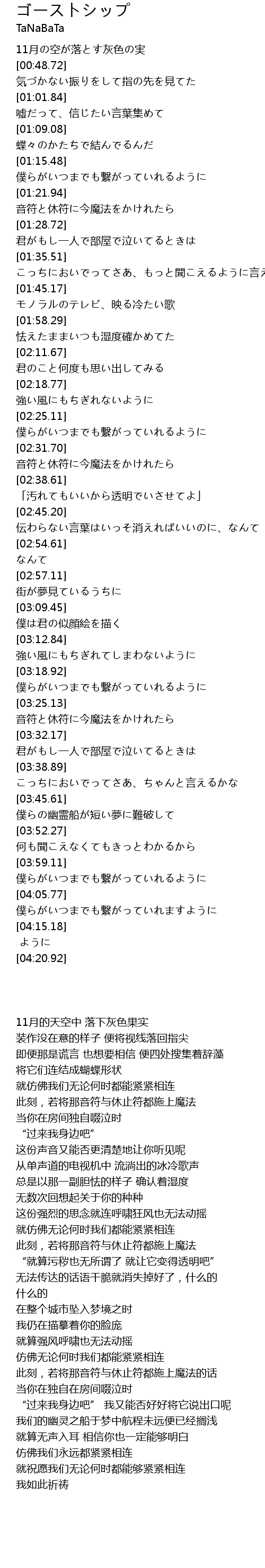| [00:37.40] | 11月の空が落とす灰色の実 |