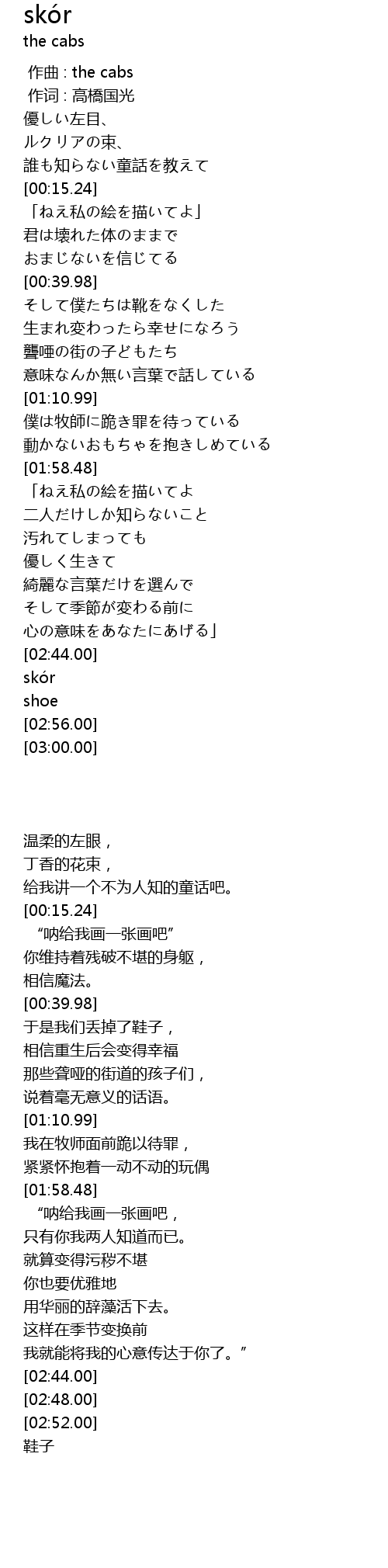 | [00:08.03] | 给我讲一个不为人知的童话吧。 |