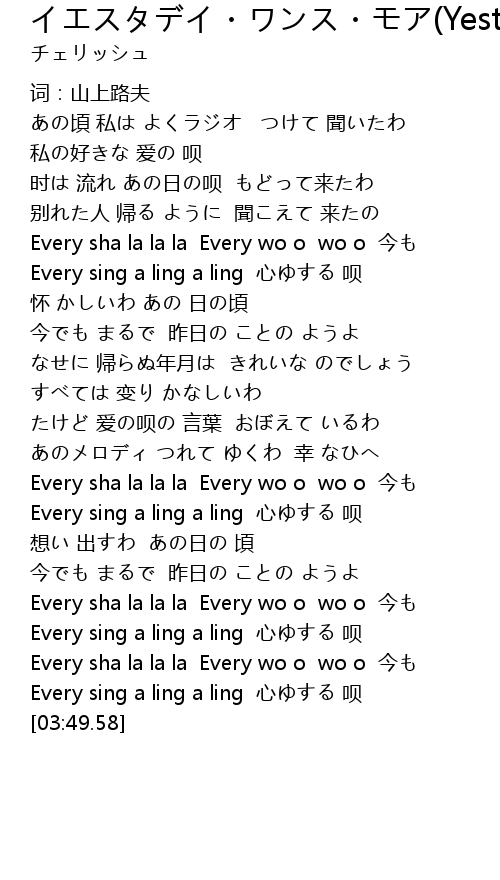 | [03:04.18] | Every sha la la la Every wo o wo o 今も |