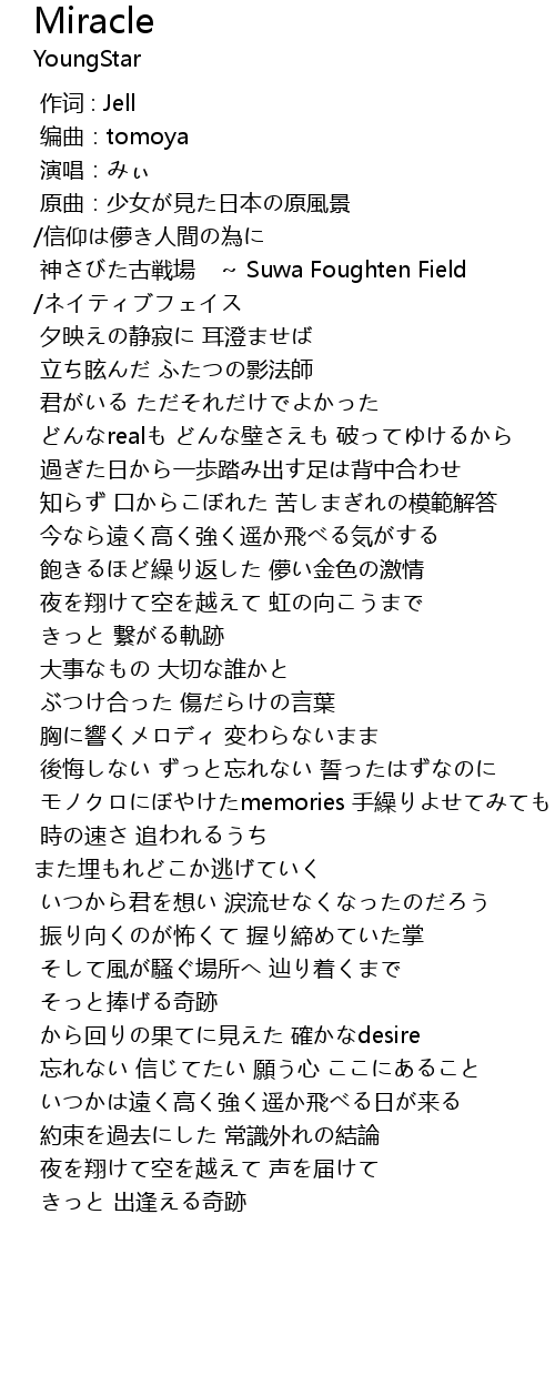 | [02:57.826] | そっと捧げる奇跡 |