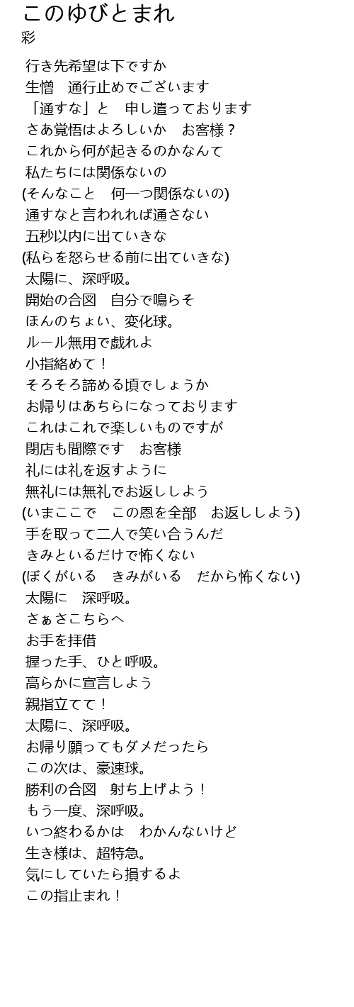 | [02:54.030] | この指止まれ! |