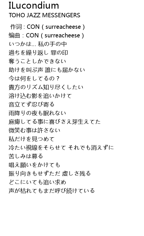 | [00:00.45] | 编曲:CON(surreacheese) |