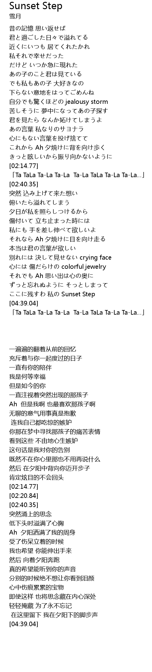 | [04:32.22] | ここに残すわ 私の Sunset Step |