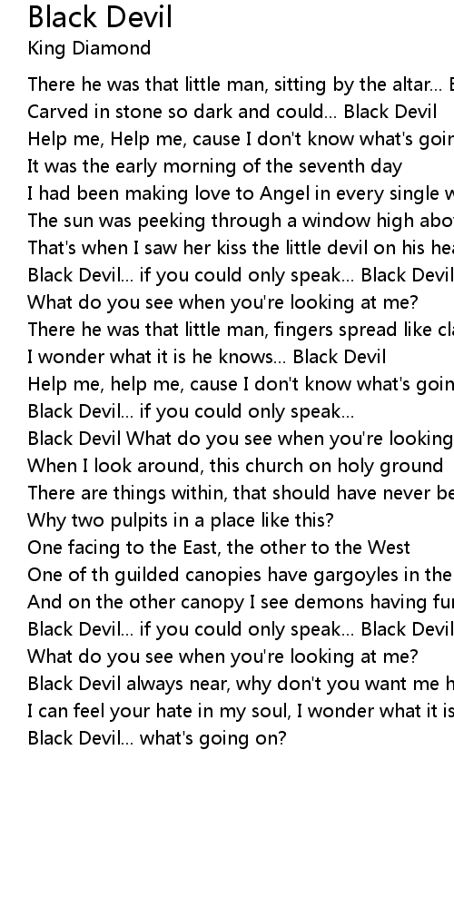 Black Devil always near, why don't you want me here? |
