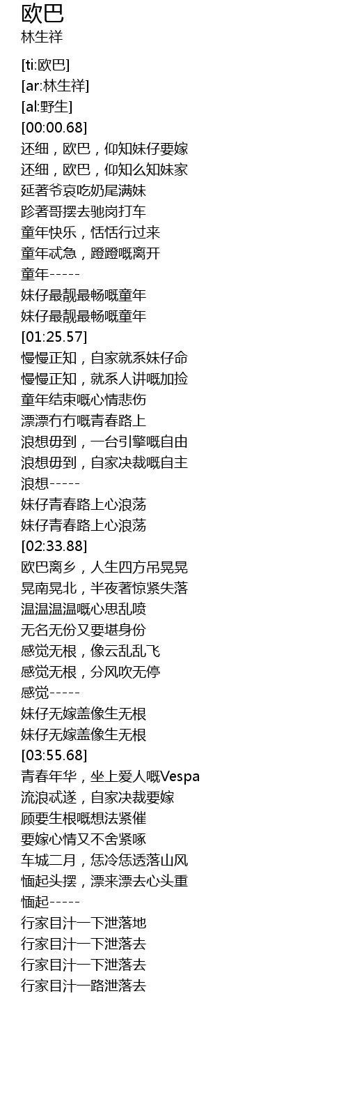 | [04:02.20] | 青春年华,坐上爱人嘅Vespa |