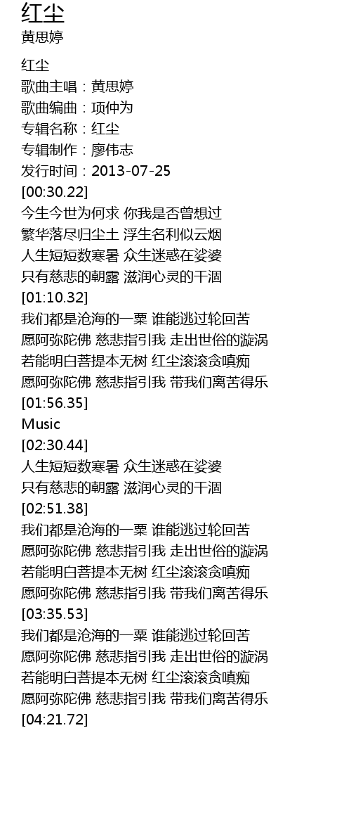 | [00:10.13] | 专辑名称:红尘 |