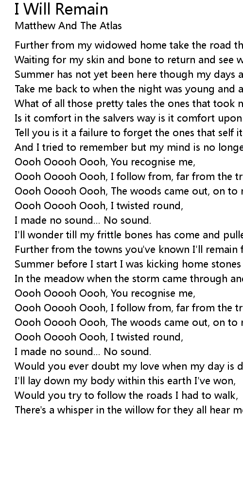 Oooh Ooooh Oooh, I follow from, far from the trees, |