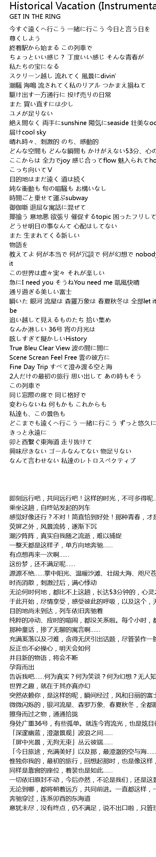 | 歌曲 | Historical Vacation (Instrumental) |