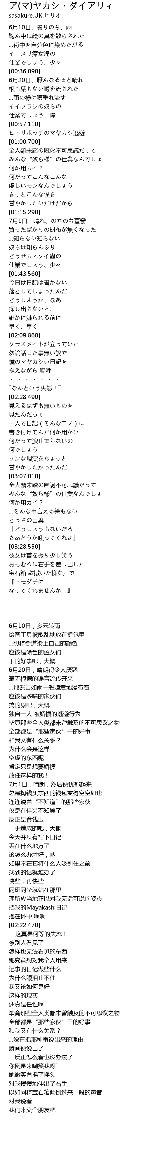 | [02:16.690] | 把我的Mayakashi日记 |