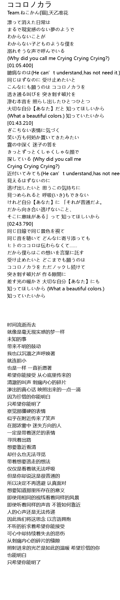 | [01:01.800] | (Why did you call me Crying Crying Crying?) |