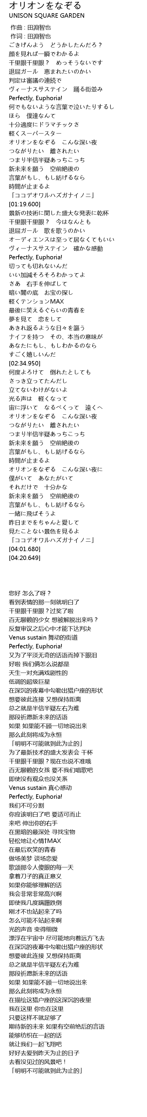 | [03:09.700] | オリオンをなぞる こんな深い夜 |