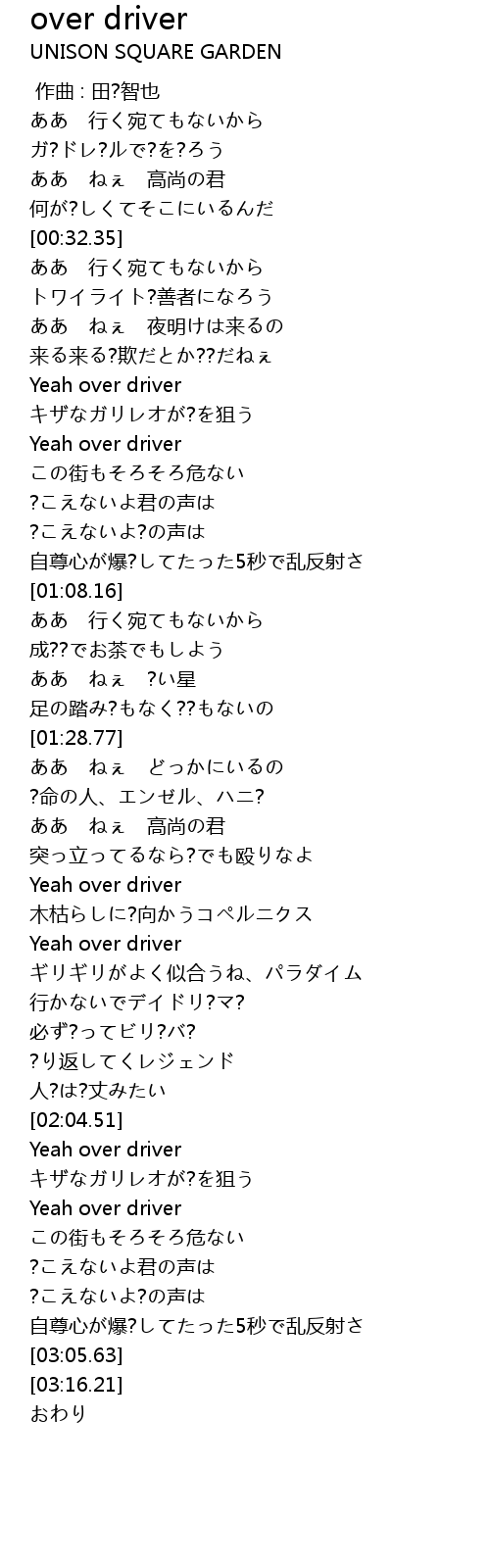 | [00:52.00] | Yeah over driver |