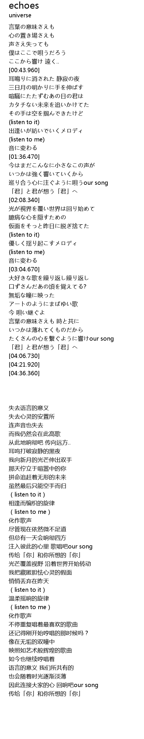 | [03:48.579] | 因此连接大家的心 回响吧our song |