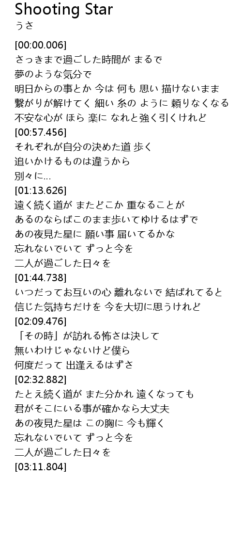 | [01:27.863] | あの夜見た星に 願い事 届いてるかな |