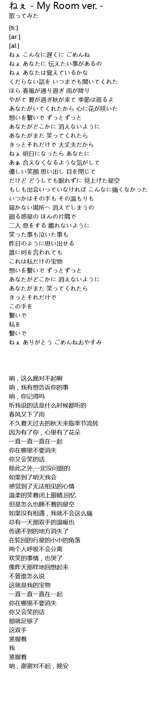 | [06:27.22] | ねぇ ありがとう ごめんねおやすみ |
