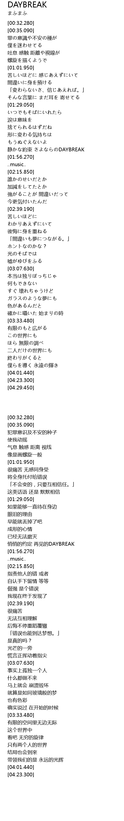 | [01:49.970] | 悄悄的约定 再见的DAYBREAK |