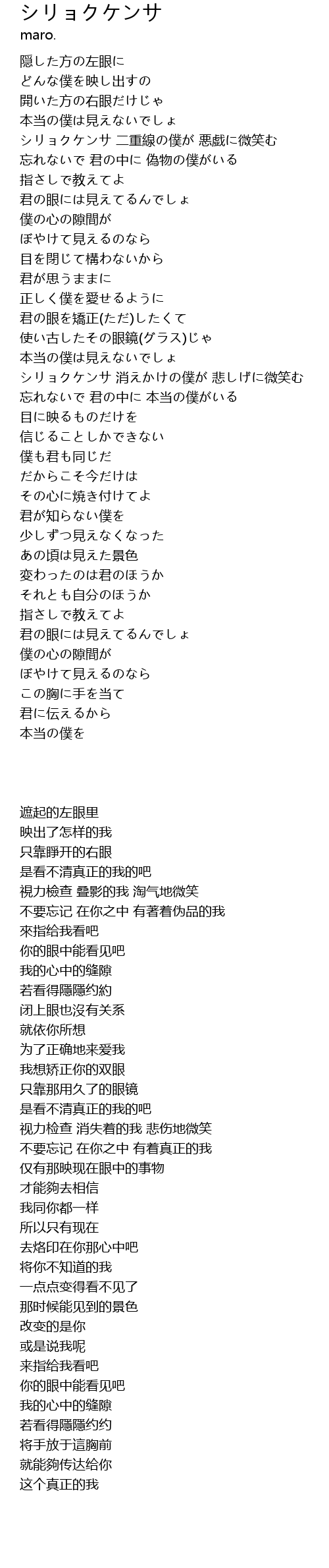 | [00:39.61] | 視力檢查 叠影的我 淘气地微笑 |