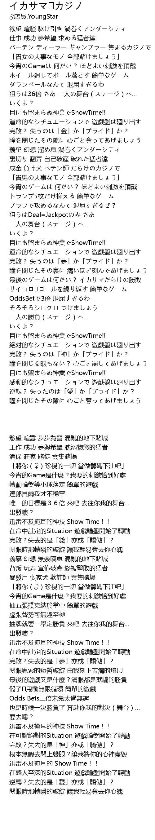 | [00:28.88] | バーテン ディーラー ギャンブラー 集まるカジノで |