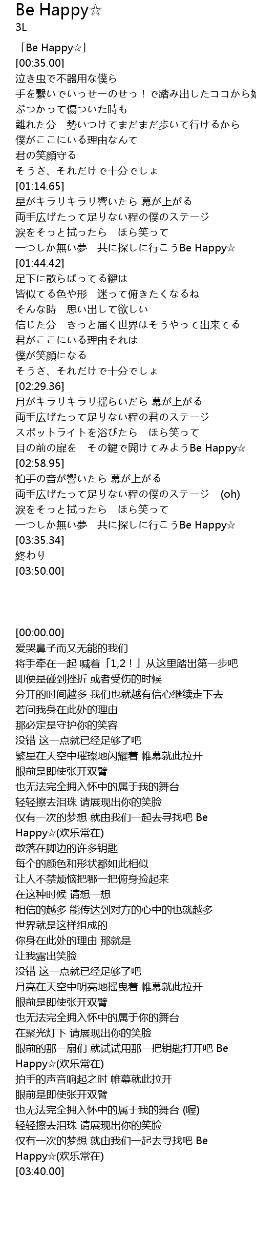 | [00:00.00] | 「Be Happy☆」 |