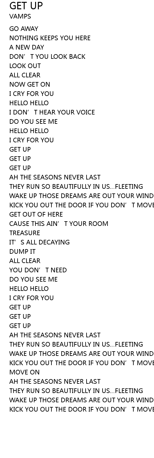 | [01:12.720] | WAKE UP THOSE DREAMS ARE OUT YOUR WINDOW |