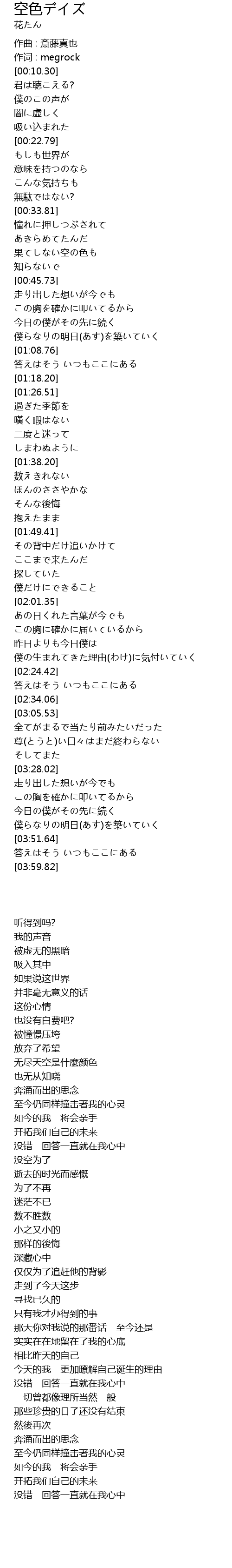 | [00:40.01] | 无尽天空是什麼颜色 |
