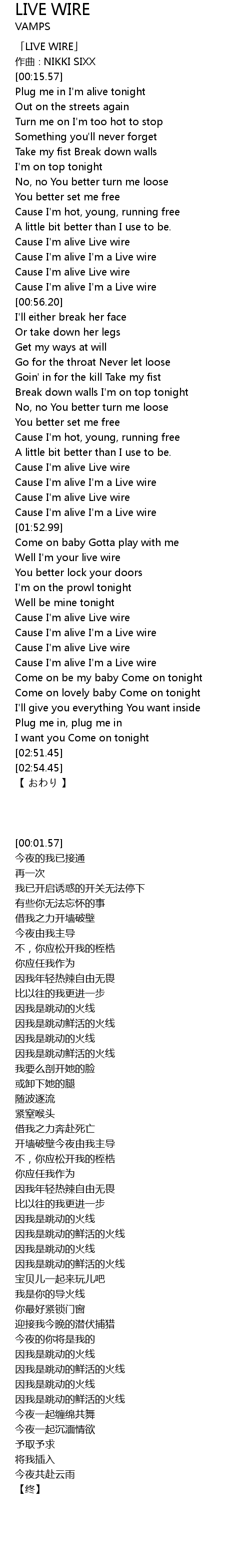 | [00:01.57] | 「LIVE WIRE」 |