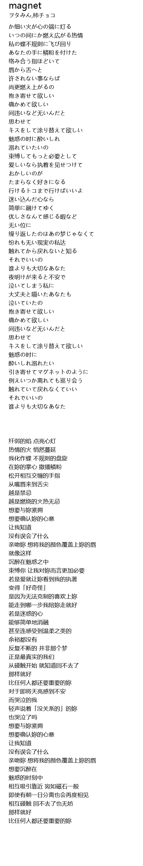 亲吻妳 想将我的颜色覆盖上妳的唇 |