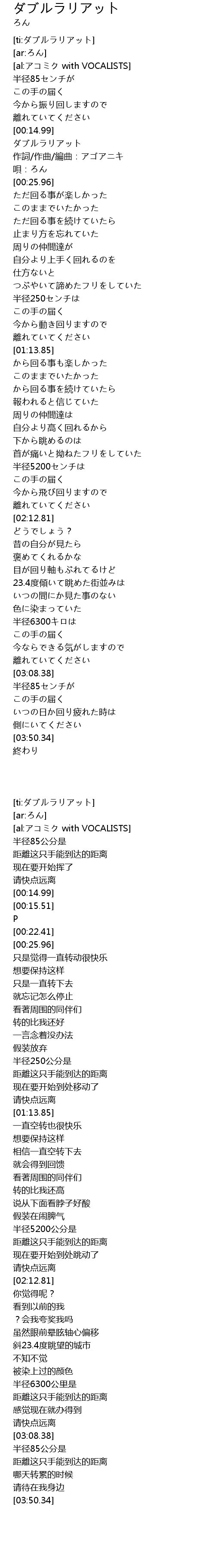 | [02:33.85] | 目が回り軸もぶれてるけど |