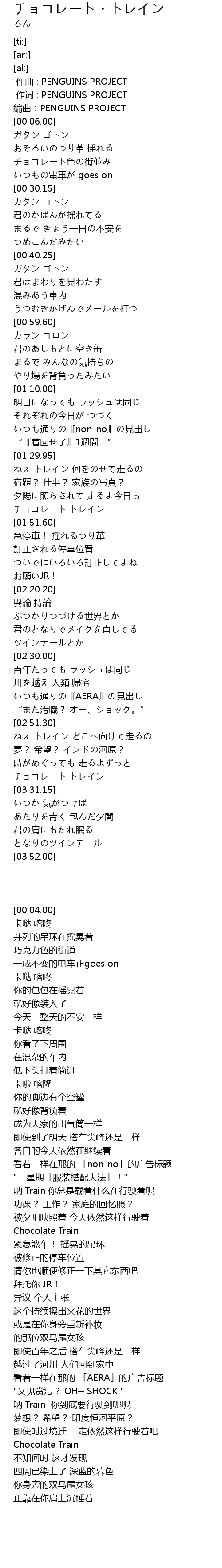 | [00:04.00] | 編曲:PENGUINS PROJECT |