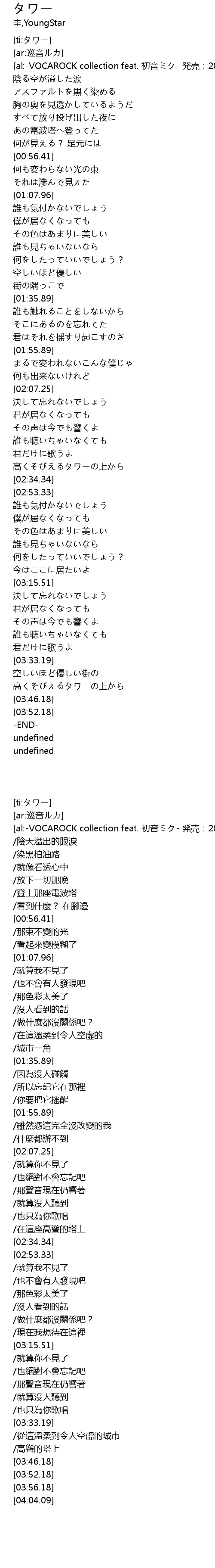 | [00:45.43] | /登上那座電波塔 |