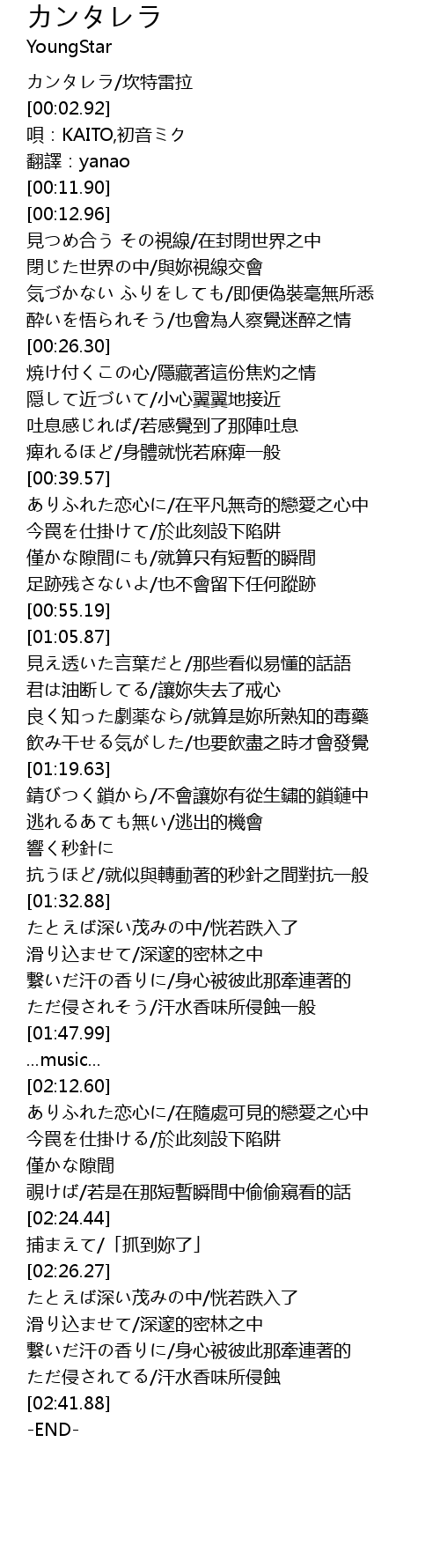 | [00:00.50] | カンタレラ/坎特雷拉 |
