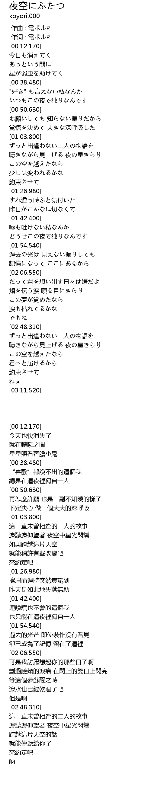 | [02:54.520] | 邊聽邊仰望著 夜空中星光閃爍 |