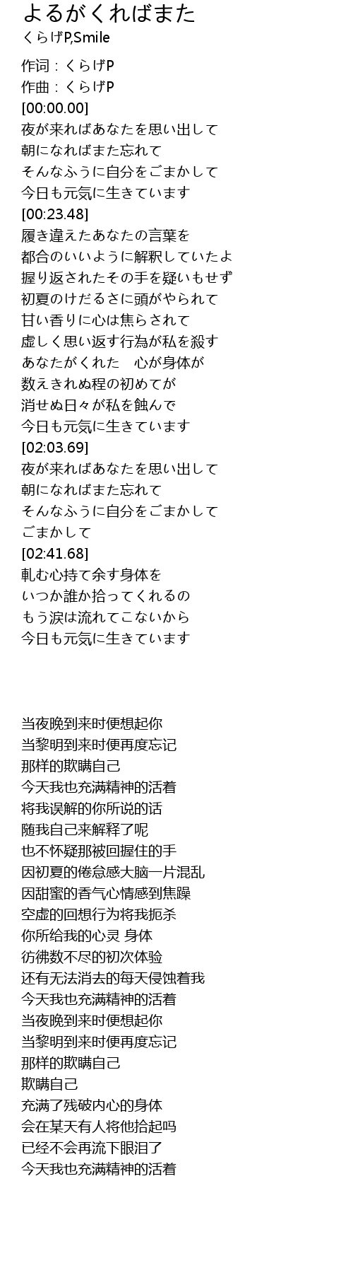 | [02:20.86] | 夜が来ればあなたを思い出して |