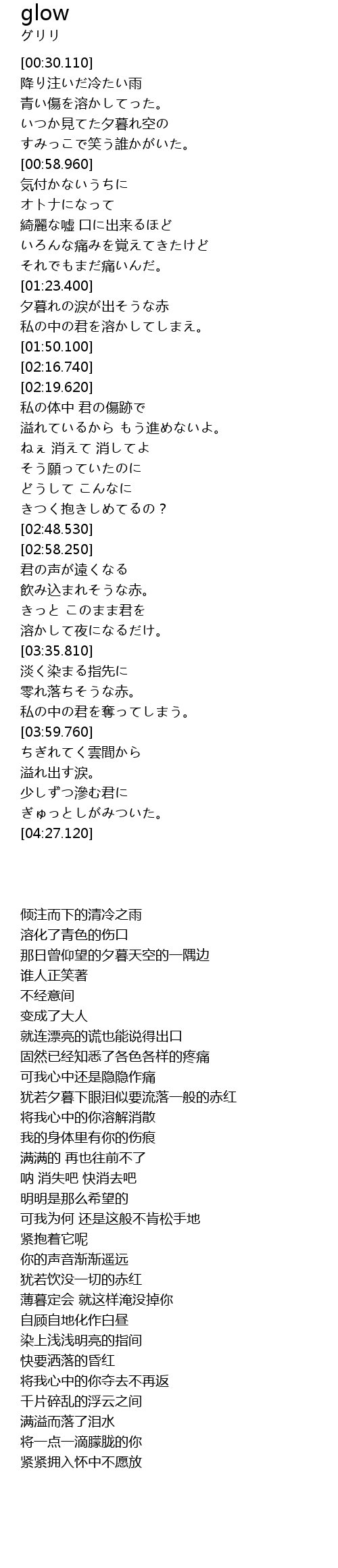 | [04:11.810] | 少しずつ滲む君に |