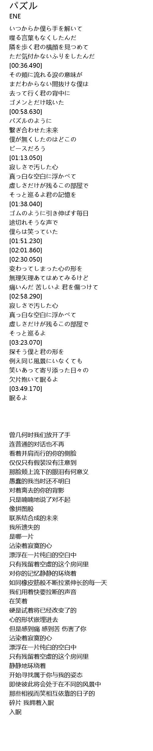 | [00:59.010] | パズルのように |
