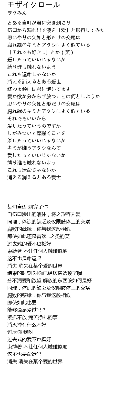 | [02:41.915] | 消失 消失在某个爱的世界 |