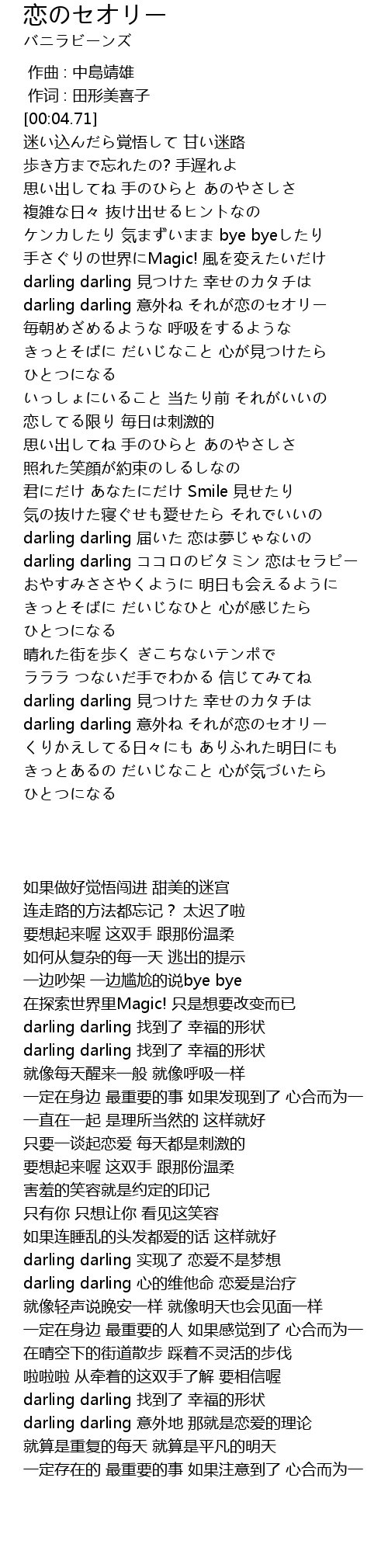 | [02:31.24] | darling darling 心的维他命 恋爱是治疗 |
