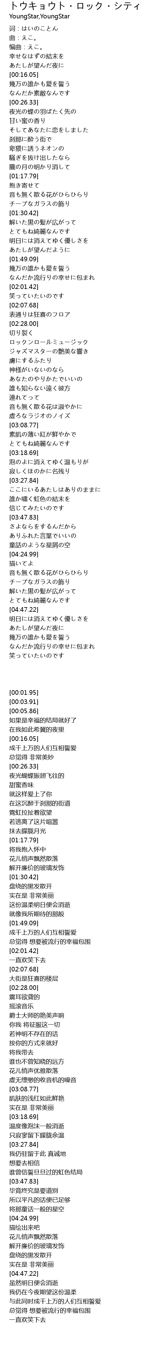 | [00:16.98] | 幾万の誰かも愛を誓う |
