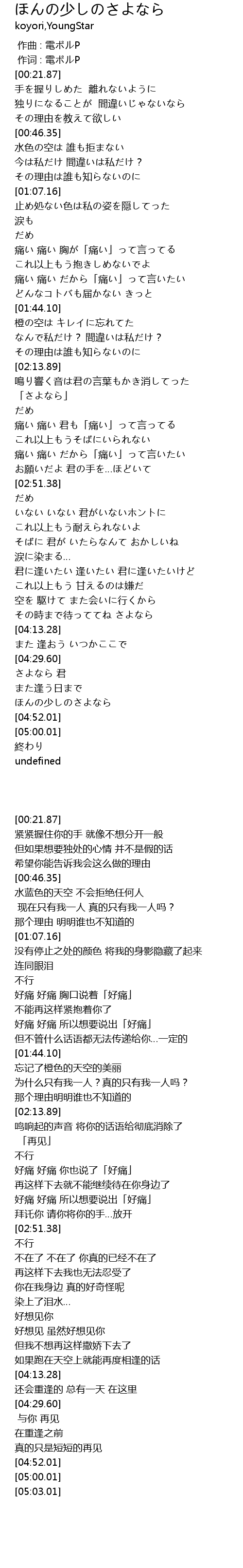 | [04:47.22] | ほんの少しのさよなら |