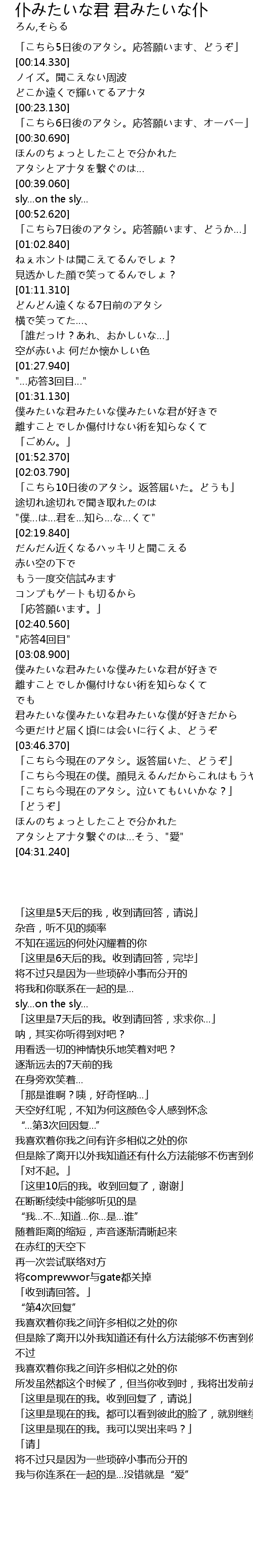 | [03:59.400] | 「这里是现在的我。收到回复了,请说」 |