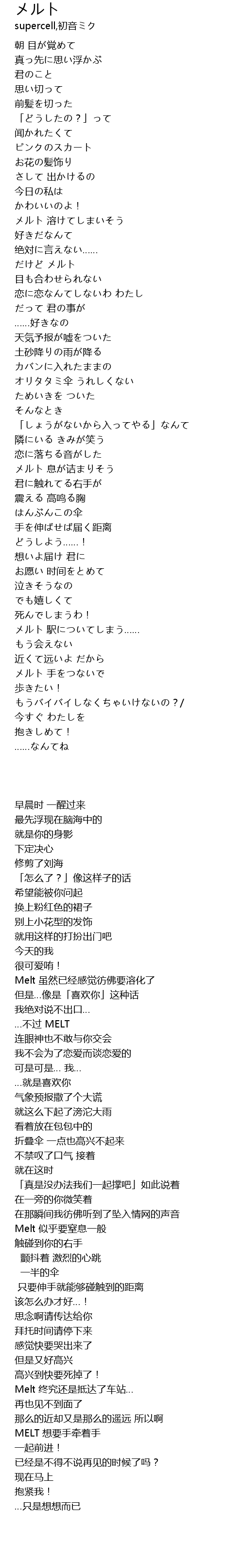| [01:02.729] | Melt 虽然已经感觉彷佛要溶化了 |